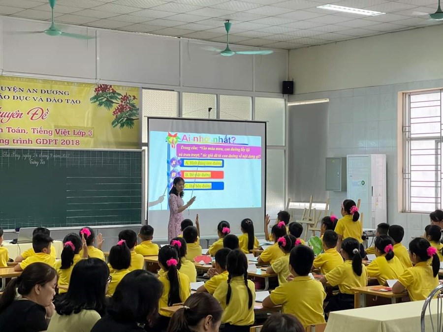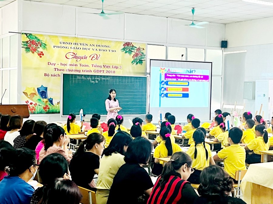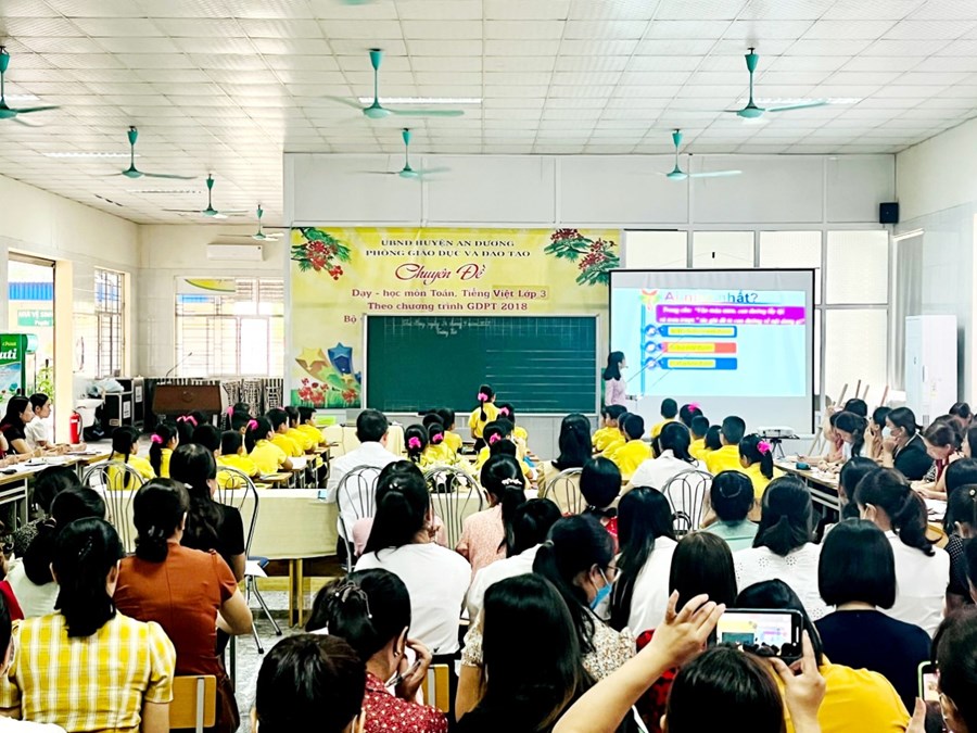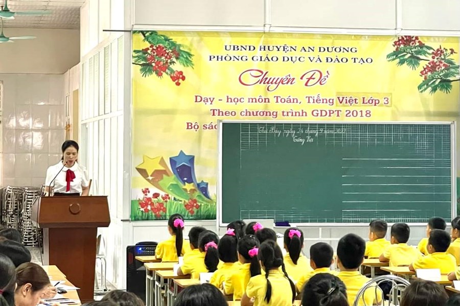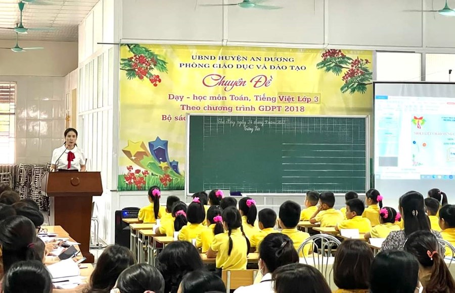 Xác định tầm quan trọng của dạy học môn Tiếng Việt lớp 3 theo chương trình GDPT 2018; thực hiện sự chỉ đạo của phòng GD&ĐT. Ngày 24/9/2022, trường TH An Dương lên lớp chuyên đề chuyên môn cấp huyện: Dạy Tiếng Việt lớp 3 theo CTGDPT 2018, bộ sách “Kết nối tri thức với cuộc sống” nhằm minh họa quy trình, phương pháp giảng dạy để các đ/c giáo viên được thảo luận, trao đổi, chia sẻ về thực tế khi thực hiện giảng dạy môn học này tại trường.