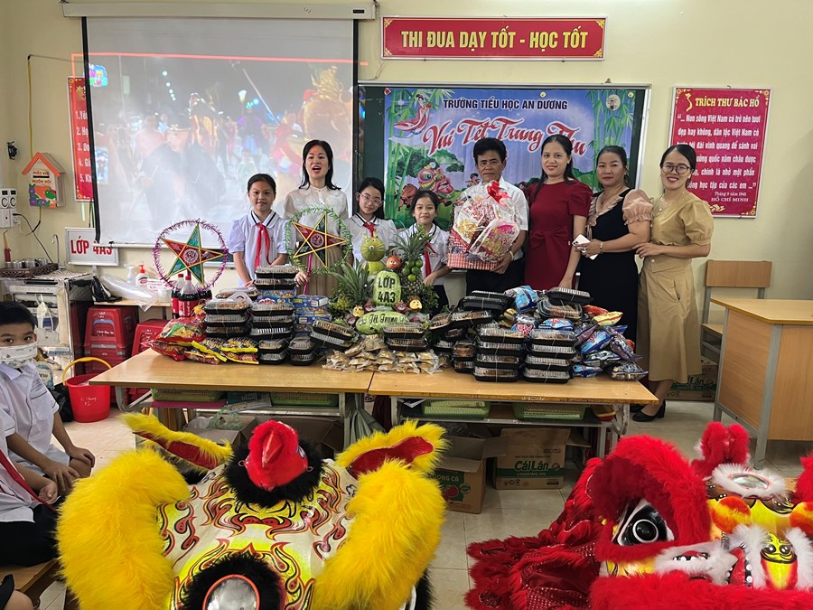 Ngày 09/9/2022, tức ngày 14/8 âm lịch, trường Tiểu học An Dương tưng bừng tổ chức ngày hội “Vui Tết Trung thu” cho các em học sinh. Ban Giám hiệu cùng Ban Đại diện CMHS trường Tiểu học An Dương đã tổ chức tặng quà cho các em học sinh của 26 lớp trong nhà trường.