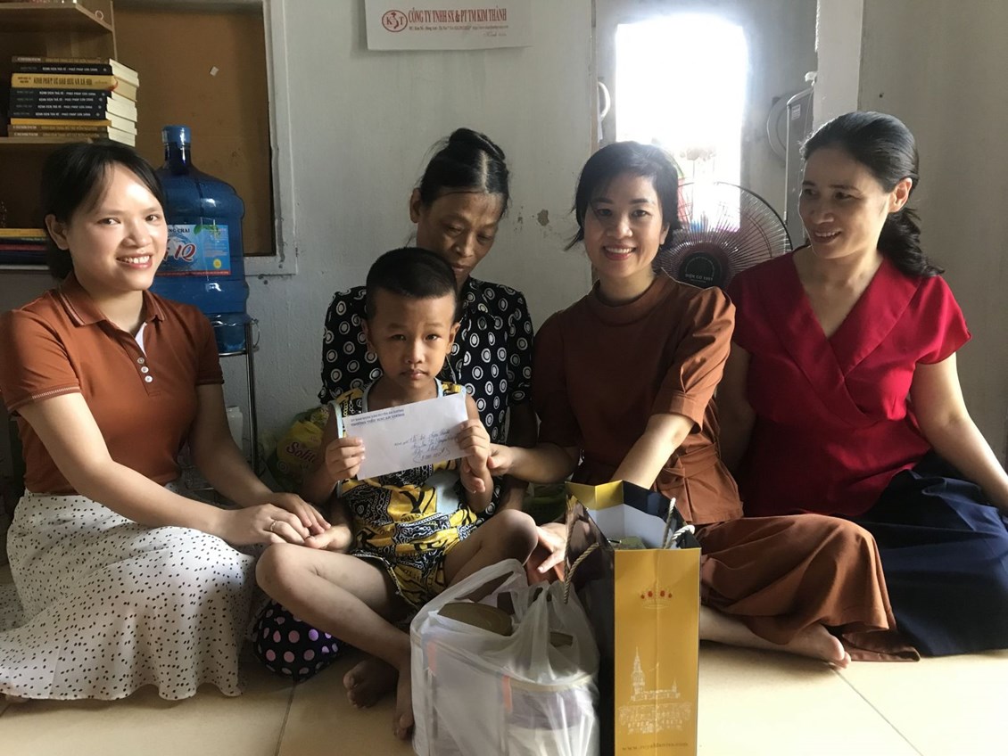 Cô giáo Đỗ Thị Thanh Đượm - Bí thư Chi bộ - Hiệu trưởng nhà trường đại diện cho CB, GV, NV, HS trao tặng kinh phí và các phần quà cho em Khánh. Ngoài ra, nhà trường sẽ chi trả toàn bộ tiền học phí, các khoản chi phí trong suốt 5 năm học cấp tiểu học, trang bị đầy đủ đồng phục và Sách giáo khoa cho em. Mong rằng, em sẽ có thêm nhiều sức khỏe, niềm vui, bình an và may mắn trong suốt con đường phía trước. Chắc chắn, em sẽ là 1 cậu học trò ngoan ngoãn, chịu khó học tập, rèn luyện như sự mong mỏi yêu thương của các thầy, cô giáo nơi ngôi trường em đang theo học.